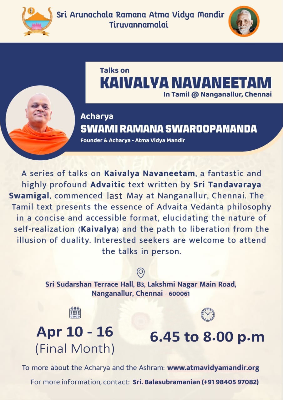 Discourses on “Kaivalya Navaneetam” @ Chennai – April 10th to 16th, 2026